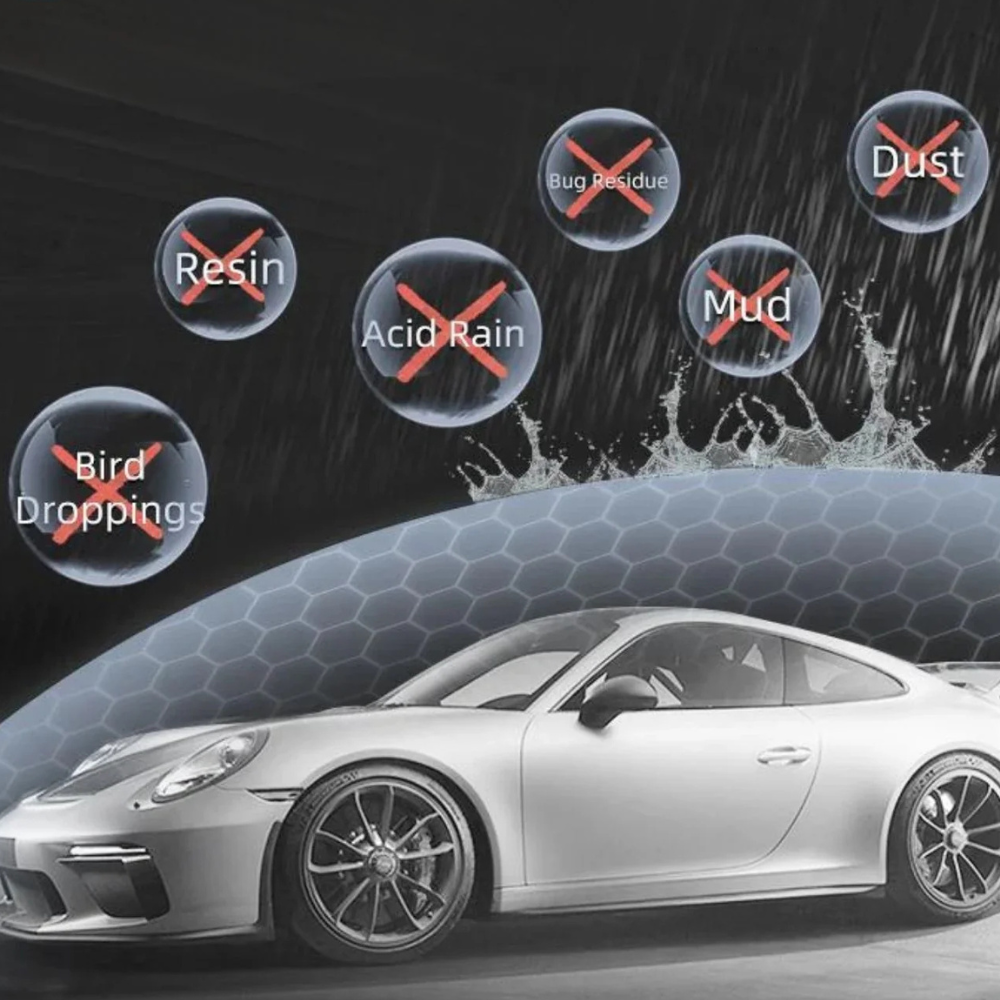NanoShield™ tworzy niewidoczną, hydrofobową warstwę, która odpycha brud, kurz i plamy wodne. Dzięki zaawansowanej nanotechnologii auto pozostaje dłużej czyste, a lakier zachowuje swoją głęboką barwę i połysk.